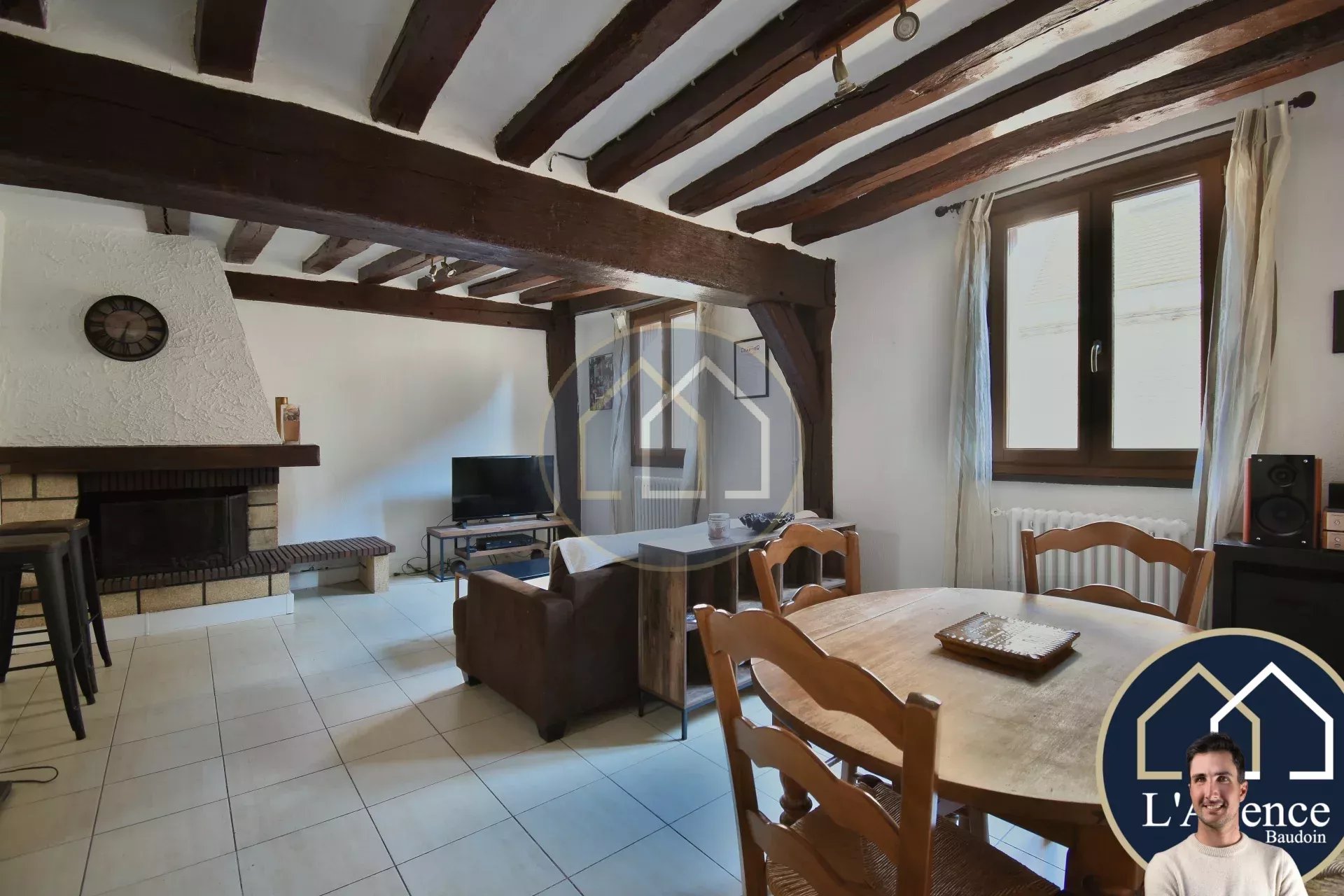 - Séjour lumineux de 23,5 m² agrémenté d’une cheminée, offrant un bel espace convivial.