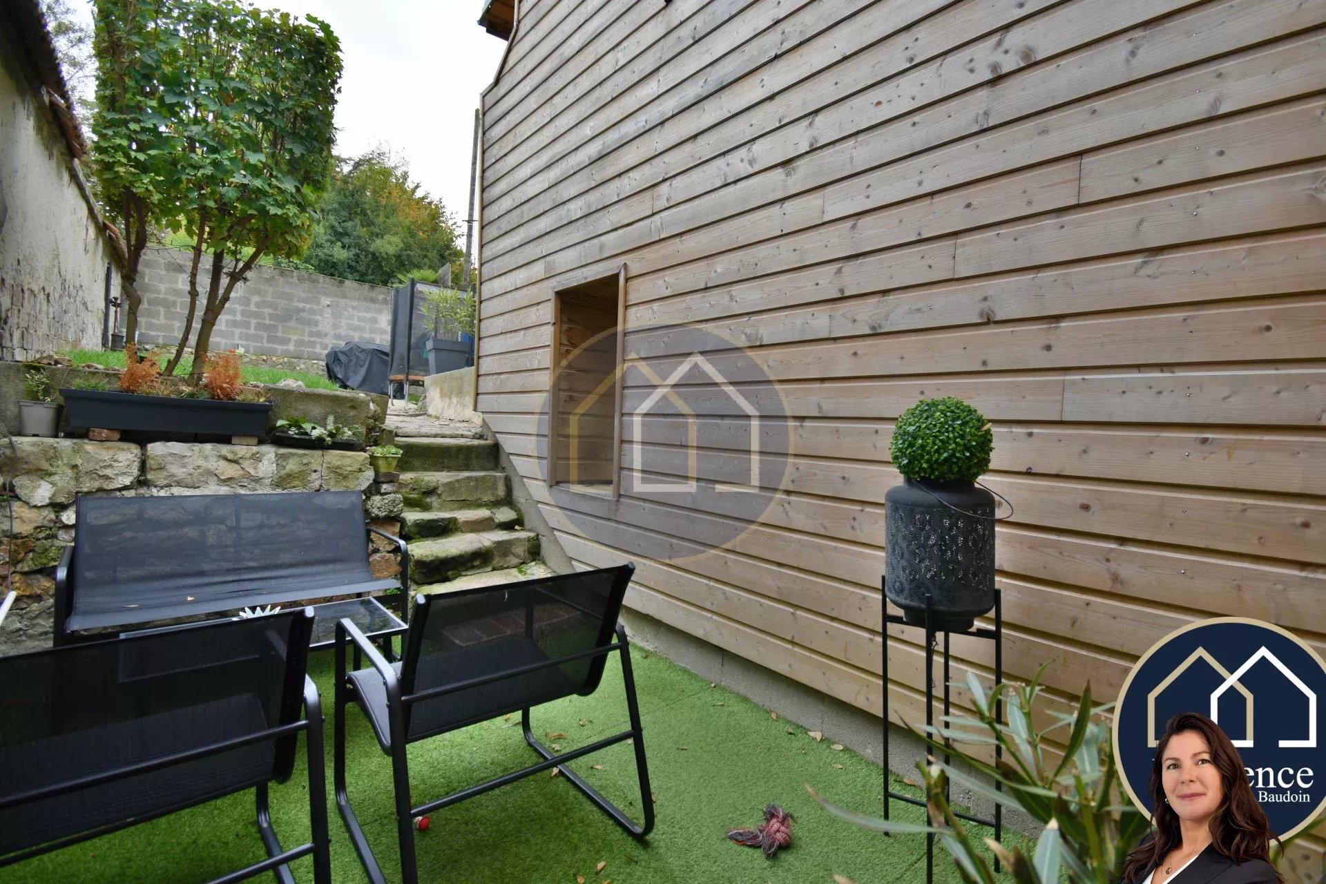 Le jardin entièrement clos sans aucun vis-à-vis saura vous charmer grâce à son joli mur en bardage bois et sa terrasse parfaitement exposée sud !